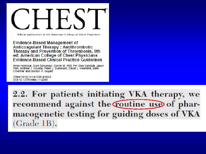 «ФГ тестирование может быть оправдано у пациентов с высоким риском кровотечений…» Принят ВНОК в октябре 2012