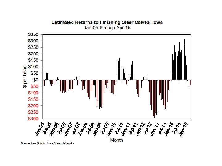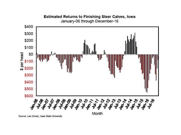 Slaughter Cattle Basis Estimates Basis Definition: the relationship between cash price and futures price Jan. 1 -15 Jan. 16 -31 Feb. 1 -15 Feb. 16 -exp. Mar. 1 -15 Mar. 16 -31 Apr. 1 -15 Apr. 16 -exp. May 1 -15 May 16 -31 Jun. 1 -15 Jun. 16 -exp. $0. 96 $1. 31 ($0. 76) ($0. 78) $1. 62 $2. 67 $3. 44 $1. 86 $7. 67 $6. 64 $4. 28 $1. 97 Jul. 1 -15 Jul. 16 -31 Aug. 1 -15 Aug. 16 -exp. Sep. 1 -15 Sep. 16 -30 Oct. 1 -15 Oct. 16 -exp. Nov. 1 -15 Nov. 16 -30 Dec. 1 -15 Dec. 16 -exp. $2. 73 $2. 06 $1. 38 $0. 64 ($0. 98) ($1. 58) ($1. 42) ($0. 93) ($1. 25) ($1. 11) ($1. 46) ($1. 45)
