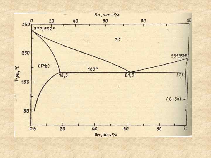 Системы эвтектического типа Отсутствие взаимной растворимости компонентов в твердом состоянии Эвтектика – минимальная температура, при которой система может целиком находиться в жидком состоянии