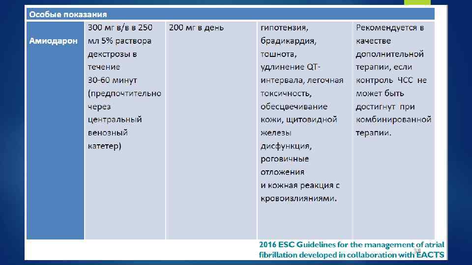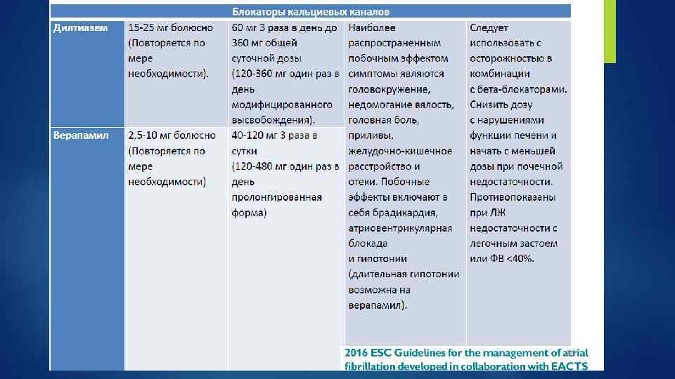 Антиаритмики для кардиоверсии Лекарство Применение Стартовая доза Последующая доза Риски Флекаинид Per os В/в 200 -300 мг 1, 5 -2 мг/кг за 10 минут - Гипотензия, ТП 1: 1, удлинение QT. Избегать при: ИБС и серьезном структурном поражении сердца. Амиодарон В/в 5 -7 мг/кг за 1 -2 часа 50 мг/ч до максимально й дозы 1 г за 24 часа Флебит, гипотензия, брадикардия, АВблокада. Восстанавливает синусовый ритм через 8 -12 часов. Пропафенон В/в 1, 5 -2 мг/кг за 10 минут 450 -600 мг - Гипотензия, ТП 1: 1, уширение QRS. Избегать при: ИБС и серьезном структурном поражении сердца Per os Ибутилид В/в 1 мг за 10 минут Через 10 мин 1 мг за 10 мин Удлинение QT, Тд. П. Избегать при: удлинённом QT, при гипокалиемии, низкой ФВ и сильной ГЛЖ. Вернакалант В/в 3 мг/кг за 10 минут Через 15 мин 2 мг/кг за 10 мин Гипотензия, неустойчивая ЖТ, удлинение QT и уширение QRS. Избегать при: САД <100 мм рт. ст. , ОКС в последние 30 дней, СН III-IV ФК, QT>440 мс и тяжелом аортальном стенозе.