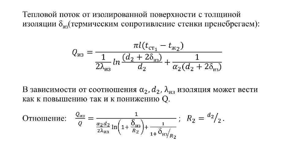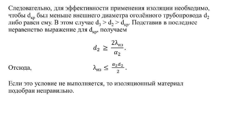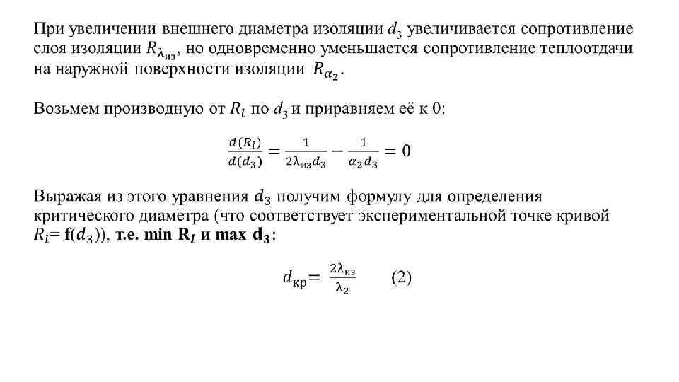 Уравнение (1) показывает, что увеличение d 3 (диаметра изоляции) в области d 2 < d 3 < dкр сопровождается увеличением тепловых потерь за счёт повышения теплоотдающей поверхности изоляции; при d 3 = dкр эти потери достигают максимального значения и только при d 3 > dкр тепловая изоляция оправдывает своё назначение; т. е. увеличение d 3 приводит к уменьшению ql.