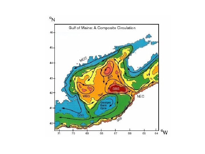 Features in Western North Atlantic Deep Sea region (GSMR) • • • Gulf Stream Warm Core Rings Cold Core Rings Southern Recirculation Gyre Northern Recirculation Gyre Deep Western Boundary Current • Gangopadhyay et al. , 3 -part series in 1997: Journal of Atmospheric and Oceanic Tech. (14) 1314: 1365 Coastal region (GOMGB) • • Maine Coastal Current NEC Inflow GSC Outflow Jordan Basin Gyre Wilkinson Basin Gyre Georges Bank Gyre Tidal Mixing Front • Gangopadhyay et al. 2002 (Continental Shelf Res. In Press) Gangopadhyay and Robinson, 2002: DAO 36(2002) 201 -232 •