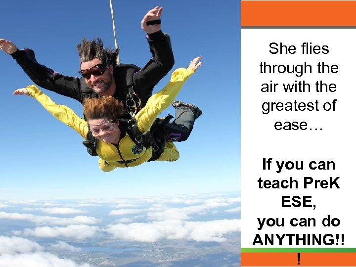 She flies through the air with the greatest of ease… If you can teach Pre. K ESE, you can do ANYTHING!! !