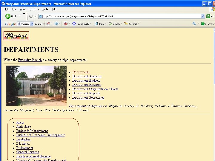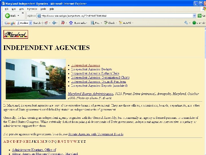 List of Maryland agency Web sites from TMLL Home Page
