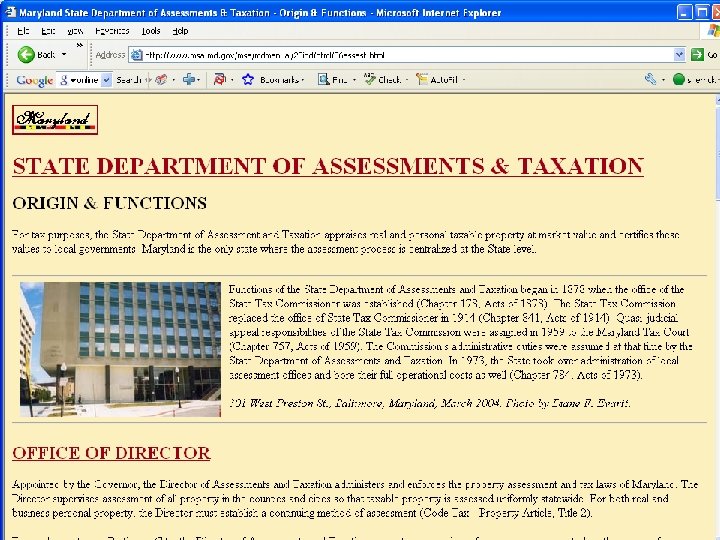 The Maryland Manual, available online, provides similar background info about Maryland agencies