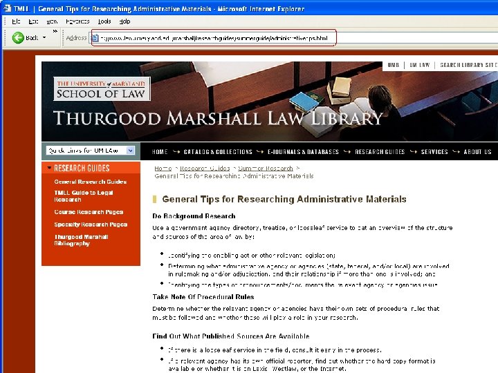 To do effective administrative research: It can help to do background research, on the Web or in print sources, to understand a particular agency’s mandate, powers, and procedures, and what publications it issues. Some good sources are the United States Government Manual, the Federal Regulatory Directory, or the Maryland Manual. Leah Chanin’s “Specialized Legal Research” (KF 240. S 64 2004 at TMLL) is a good resource for some subject areas. Treatises and law reviews may also be helpful.