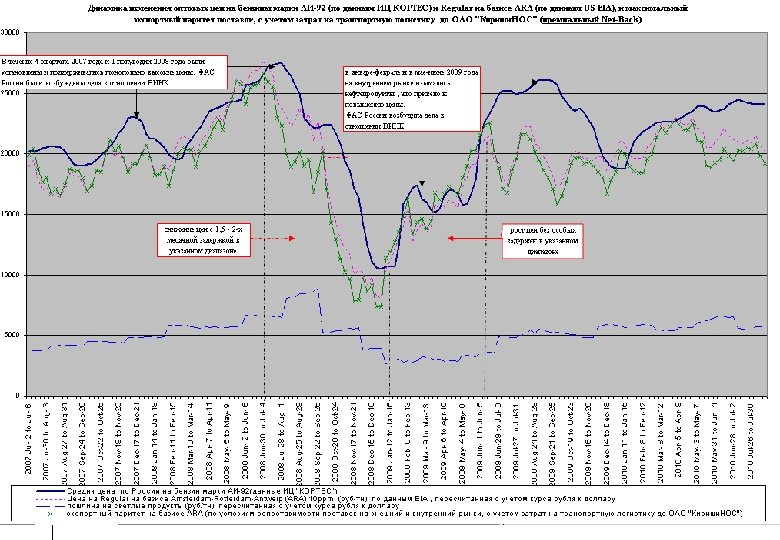 Объяснения нефтяных компаний о ситуации на внутреннем рынке нефтепродуктов 1. Нефтяные компании ссылаются на затруднения, возникшие в связи со вступлением в силу требований Техрегламента 2. Ряд компаний ссылаются на конъюнктуру биржевых торгов, при этом отгрузка внутри группы лиц происходит по ценам ниже биржевых. 3. Нефтяные компании утверждают, что при формировании цен внутреннего рынка на бензины не используют принцип равноэффективности поставок, с отсылкой к колебаниям динамики мировой конъюнктуры. В тоже время, когда внешний рынок демонстрирует повышательную тенденцию, она транслируется в динамику внутренних цен, а понижательный тренд не всегда находит отражение на внутреннем рынке. 4. Ни одна компания не обосновала причины несоразмерной динамики цен (цена на АЗС, приведенная в руб/тн, ниже, чем цена НПЗ). В ФАС России поступают жалобы от независимых участников рынка либо о невозможности приобретения нефтепродуктов, либо о нерентабельности осуществления ими хозяйственной деятельности в связи с высокими закупочными ценами