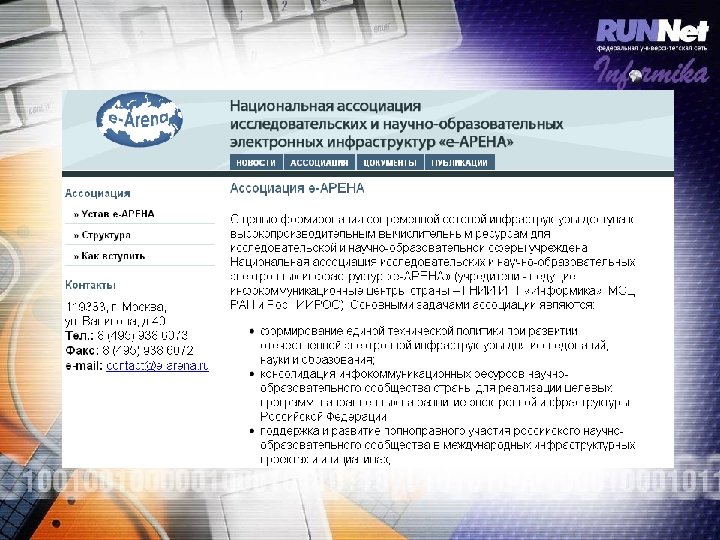 RUNNet Data. GRID: расширение • Участие в RUNNet Data. GRID – выделить физический сервер с public IP-адресом – установить на нем ОС семейства Linux – написать заявку о желании подключить сервер в RUNNet Data. GRID с указанием о проведении самостоятельной настройки сервера (в соответствие с руководством) или с просьбой произвести настройку сервера специалистами RUNNet • Использование RUNNet Data. GRID – для всех ВУЗов будет доступна регистрация по e-mail (с IP-адресов, выделенных RUNNet) для использования системы