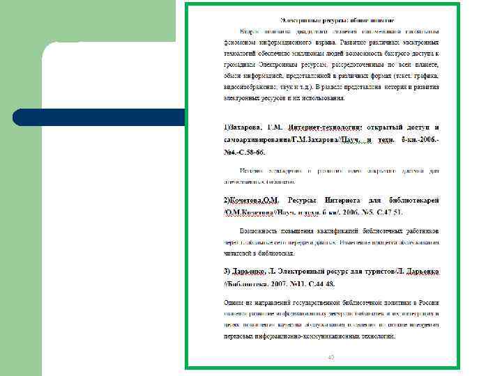 Результаты экспертных оценок l l l Вопросы использования электронных информационнобиблиографических ресурсов актуальны в современной библиотечной науке и практике Аннотации лаконичны, раскрывают содержание каждой публикации пособие нашли отражение интересные публикации на иностранных языках материал расположен в логической последовательности Литература расположена по языковому признаку.