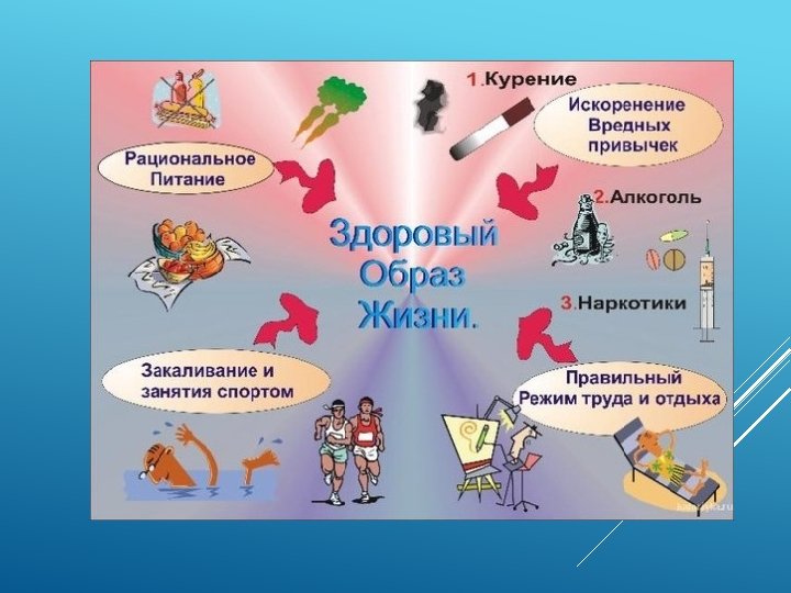 ВРЕДНЫЕ ПРИВЫЧКИ И ИХ ВЛИЯНИЕ НА ЗДОРОВЬЕ Здоровый образ жизни - что это такое? Далеко не каждый человек сможет ответить на этот вопрос. На самом деле все просто. Это – рациональное питание, физическая нагрузка, отсутствие вредных привычек и соблюдение гигиенических правил, это способ жизнедеятельности, направленный на сохранение и улучшение здоровья людей. Способствует здоровому образу жизни гигиенический режим труда и отдыха, а вот мешают такие вредные привычки, как курение, употребление алкоголя и наркотиков. Вредная привычка – это искажение интеллекта на очень глубоком уровне, это болезнь, психическая неадекватность. Вредная привычка – это короткий путь получить удовольствие, прибегая к курению, алкоголю, наркотикам, азартным и компьютерным играм и т. п. .