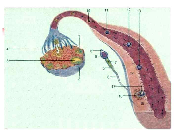 ПЛОДНОЕ ЯЙЦО В МАТКЕ НА Плодное 3 -М МЕСЯЦЕ яйцо в матке БЕРЕМЕННОСТИ: 1 — матка; 2 — пуповина; 3 — хорион; 4 — эмбрион; 5 — амниотическая оболочка.