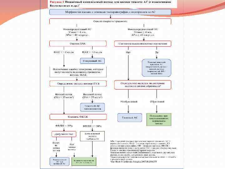 Критерии, которые повышают вероятность тяжелого стеноза аорты у пациентов с ПАК < 1. 0 см 2 и средним градиентом < 40 мм рт. ст. в присутствии сохранившейся фракции выброса (с изменениями Баумгартнера и др. ) Критерии Клинические критерии Данные качественной визуализации Данные количественной визуализации Типичные симптомы без другого объяснения Пожилые пациенты (>70 лет) Гипертрофия ЛЖ (дополнительная история гипертонии, которая должна быть учтена) Уменьшенная продольная функция ЛЖ без другого объяснения Средний градиент 30 -40 мм рт. ст. ПАК ≤ 0. 8 см 2 Низкий поток (SVi < 35 мл/м 2) подтверждается методами, отличными от стандартной допплеровской методики (измерение ТЛЖ с помощью 3 D ТЭЭ или ССМР; МКТ, инвазивные данные) Количество кальция при МКТ o Тяжелый аортальный стеноз очень вероятен: мужчины ≥ 3000; женщины ≥ 1600 o Тяжелый аортальный стеноз вероятен: мужчины ≥ 2000; женщины ≥ 1200 o Тяжелый аортальный стеноз маловероятен: мужчины < 1600; женщины < 800 3 D = трехмерный; ПАК = площадь аортального клапана; ССМР = сердечно-сосудистый магнитный резонанс; ЛЖ= левый желудочек; ТЛЖ = тракт левого желудочка; МКТ = многослойная компьютерная томография; SVi = индекс объема удара; ТЭЭ = трансэзофагеальная эхокардиография. а. Гемодинамика измеряется, когда пациент является нормотензивным. б. Значения приведены в произвольных единицах с использованием метода Агатстона для количественной оценки кальцификации клапана.