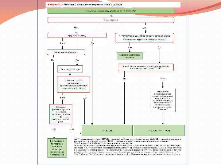 Особые категории пациентов Пациенты, у которых есть показания к АКШ и у которых умеренный аортальный стеноз, в целом получат пользу от сопутствующей ЗАКХП. Пациентам с тяжелым симптоматическим аортальным стенозом и диффузной ИБС, которые нельзя реваскулировать, не следует отказывать в ЗАКХП или ТИАК. Комбинированные ЧКВ и ТИАК являются выполнимыми, но для получения твердой рекомендации требуется больше данных. Хронология вмешательств должна быть предметом индивидуального обсуждения на основе клинического состояния пациента, степени риска развития ИБС.