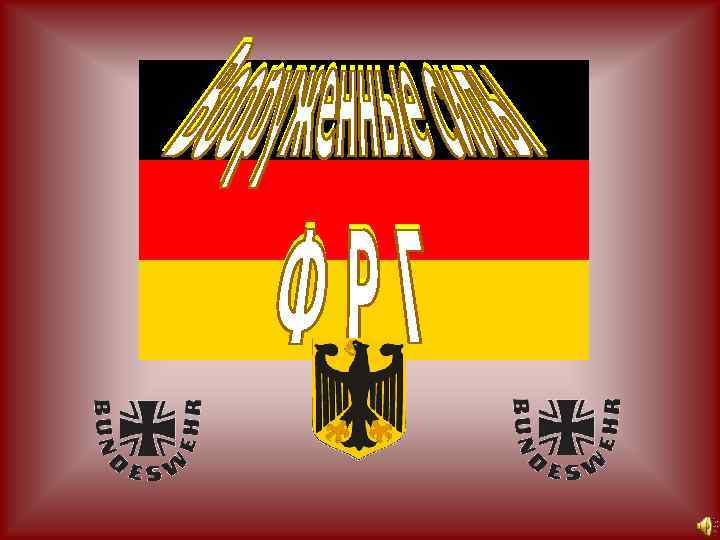 Мотопехотная бригада мпд ФРГ Командир бригады Мотопехотный батальон Смешанный танковый батальон Роты Танковый батальон Роты Штабная и снабжения Мотопехотная Артиллерийский дивизион Батареи Штабная и снабжения Танковая Огневая Мотопехотная Танковая Штаб Минометная Р о т ы Штабная Истребительнопротивотанковая Инженерная Снабжения Ремонтная Всего в бригаде Личный состав, чел 3500 ПУ ПТУР "Милан" 54 Танки "Леопард-1" 54 Самоходные ПУ "Ягуар-1" с ПТУР "Хот" 12 БМП "Мардер" 72 20 -мм зенитные пушки 4 БТР М-113 60 44 -мм РПГ "Панцерфауст-1" 320 БРМ "Лукс" 8 Радиостанции 770 155 -мм СГ М-109 G 18 Автомобили 780 120 -мм самоходный миномет 12