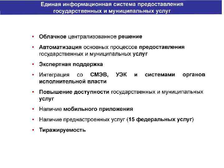 • Межведомственное информационное взаимодействие - осуществляемое в целях предоставления государственных и муниципальных услуг взаимодействие по вопросам обмена документами и информацией, в том числе в электронной форме, между органами, предоставляющими государственные услуги, органами, предоставляющими муниципальные услуги, подведомственными государственным органам или органам местного самоуправления организациями, участвующими в предоставлении предусмотренных частью 1 статьи 1 настоящего Федерального закона государственных или муниципальных услуг, иными государственными органами, органами местного самоуправления, многофункциональными центрами; (СМЭВ? ) 15