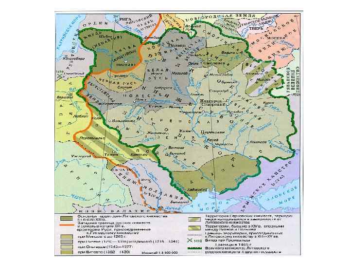 После распада Киевской Руси нынешние территории Украины находились под властью 1. Великого княжества Литовского, Речи Посполитой синий цвет. 2. Тюркоязычных народов – розовый цвет 3. Позднее Российской империи – остальное и всё в целом.