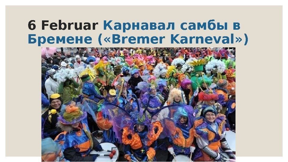 6 Februar Карнавал самбы в Бремене ( «Bremer Karneval» )