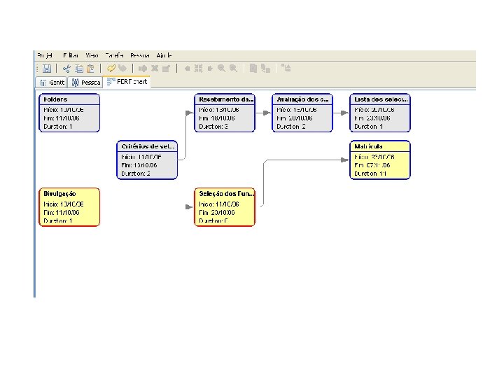 Ganttproject Características: § Ferramenta livre § Multiplataforma § Desenvolvida em Java § Ferramenta local § A versão atual 2. 0. 2 § Salva os arquivos no formato XML