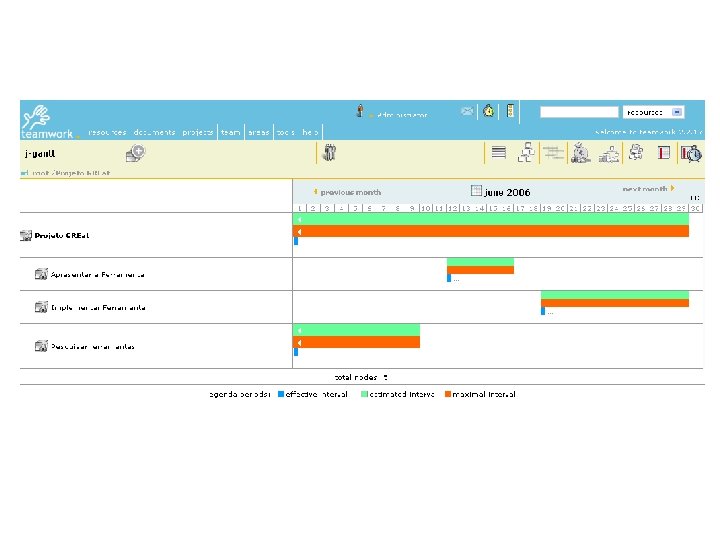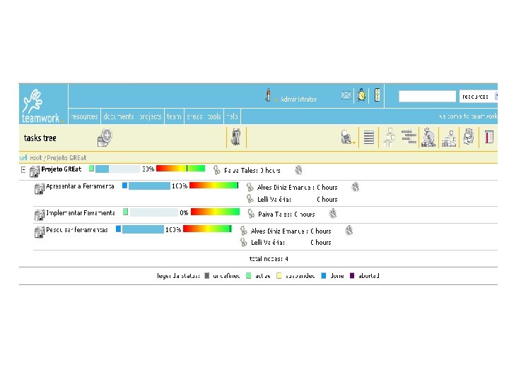 Teamwork Características: § ferramenta livre até a versão 2. 0 § Multiplataforma § Aplicação Java § Interface Web § Ambiente Multiprojetos § Banco de dados (My. Sql, Oracle, Postgres)
