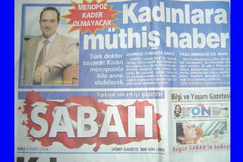 History of ART l The new millenium: « 2001 Clinic Specific Success about 28% per cycle overall «Oocyte and ovarian slice cryopreservation with function (Oktay) «İnvitro maturation matures