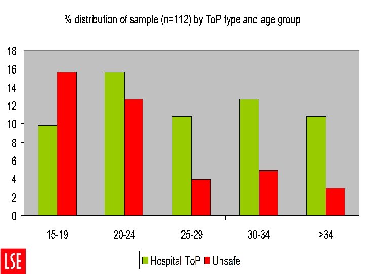 Procedure % (n=112) Safe abortion at hospital 59. 8 (Un)safe abortion: medical abortion initiated elsewhere 14. 7 Unsafe abortion: any other method 25. 5