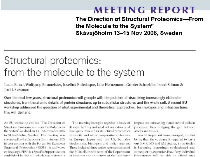 Google * CELL *Hartmut Oschkinat, FESP Workshop, Skåvsjöholm, 13 -15 Nov 2006