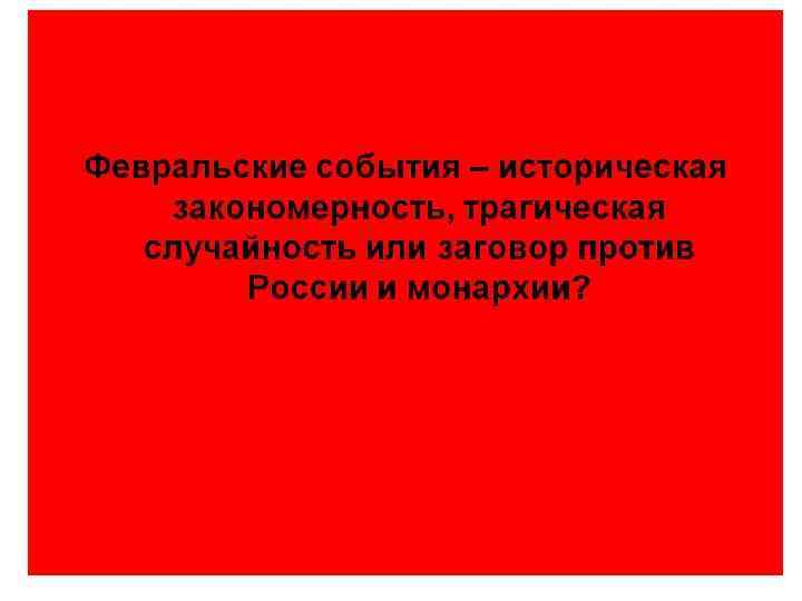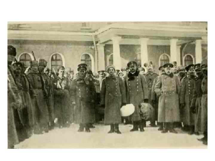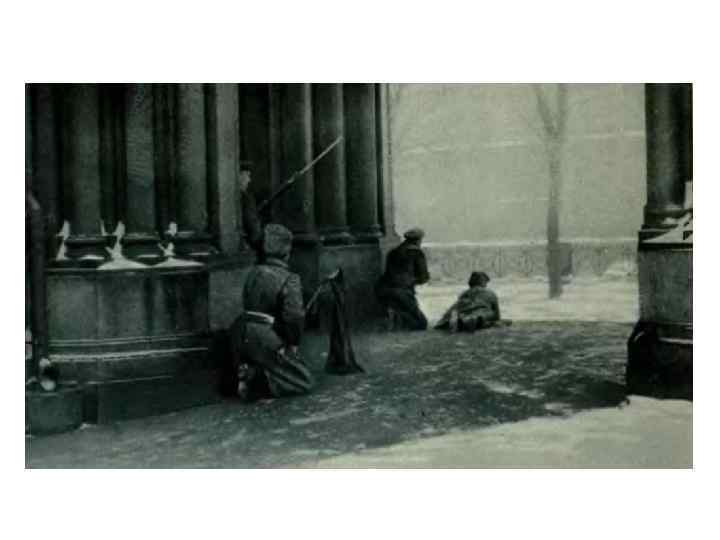 «Бескровная революция» • Хотя Февральская революция именовалась « бескровной» , в действительности это было не так — только в Петрограде в дни свержения старой власти было убито 169 человек, ранено свыше тысячи, на Балтийском флоте было убито около ста офицеров, кровь пролилась во многих местах России. • Начало Гражданской войны в России ряд историков отсчитывают от февраля 1917 года.