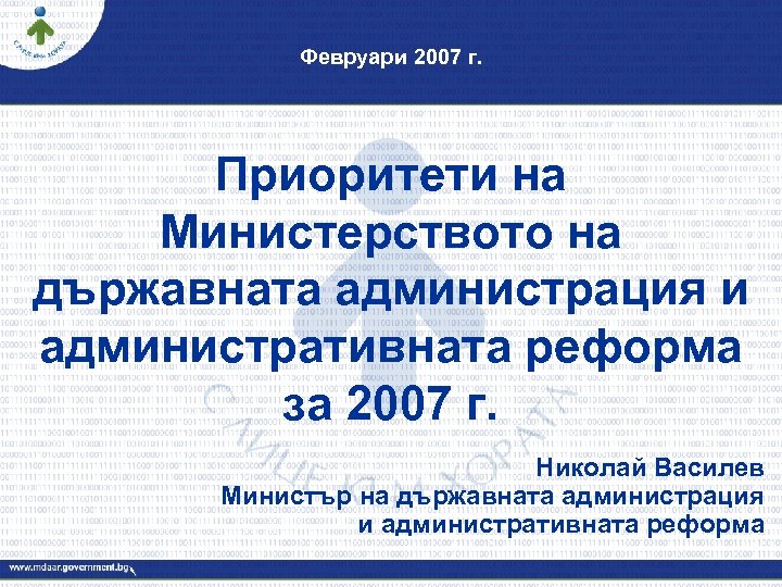 Февруари 2007 г. Приоритети на Министерството на държавната администрация и административната реформа за 2007 г. Николай Василев Министър на държавната администрация и административната реформа