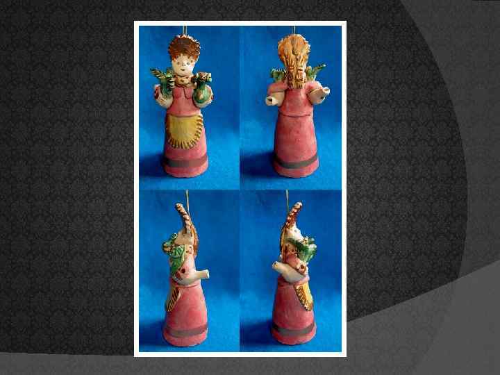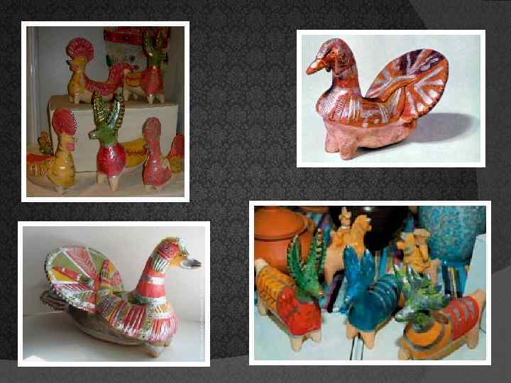 Заключение Романовские глиняные игрушки поражают неповторимым сочетанием простоты и красоты. В каждой игрушке есть своя, принадлежащая только ей, жизнь. Изучив их историю, рассмотрев, возникает непреодолимое желание послушать как они свестят. Ведь раньше на ярмарках, базарах эти свистки раздавались со всех сторон, и , что самое интересное, ни один звук не был похож на другой… Очередной раз убеждаюсь, что любая игрушка, сделанная руками человека, особенно если она дошла до нас спустя десятки лет, может подарить нам неповторимые ощущения только лишь от одного взгляда на него…Каждая из них несет в себе что-то особенное, у любого поколения вызывая только трепет и уважение к искусству своего народа.
