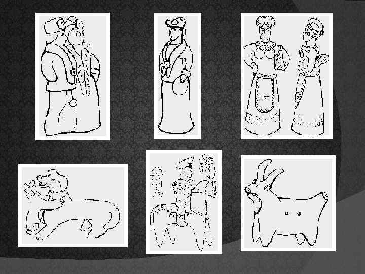 Среди «романушек» ещё множество разнообразных образов: царственные индюки, петухи с гребнем-полусолнцем, быки с тонкими полосками «инея» , утки с целым ожерельем утят и такие сложные композиции, как барыни «романушки» , танцующие медведи, всадники- «казаки» .