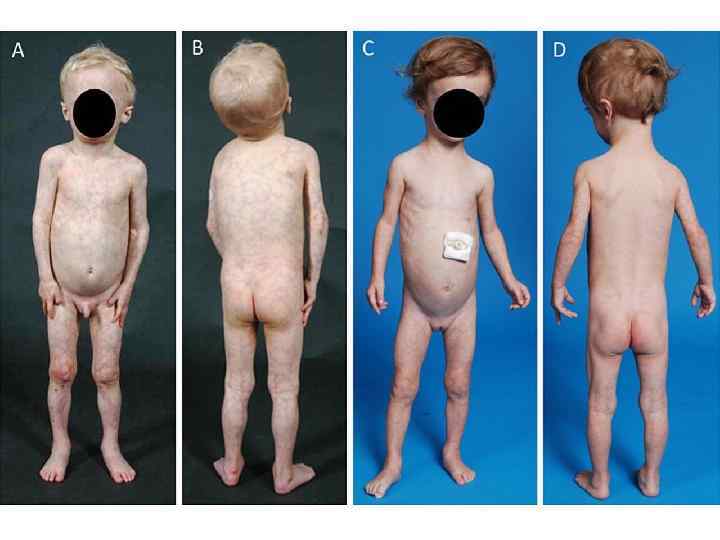 Врожденная генерализованная липодистрофия (синдром Берардинелли-Сейпа) Полное отсутствие ПЖК Выраженная рельефность скелетных мышц Усиленный венозный рисунок на конечностях Пупочная грыжа Гепато- и спленомегалия Гиперфагия Акромегалоидные черты Инсулинорезистентность НАЖБП Гиперандрогения