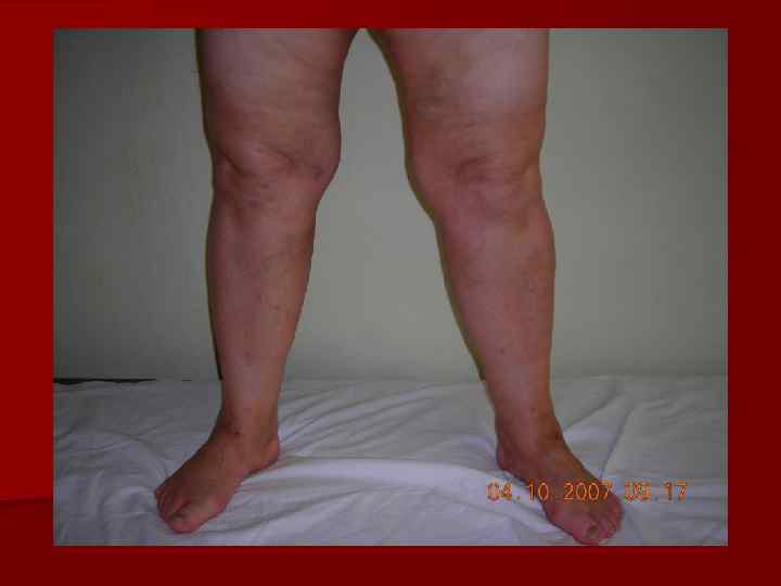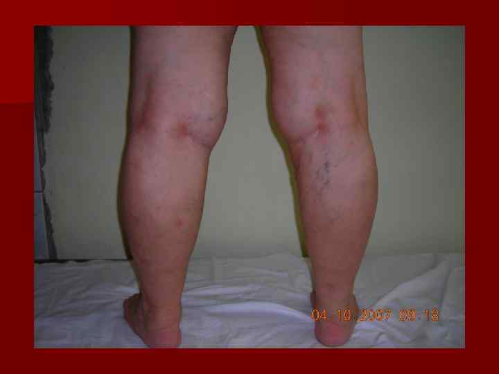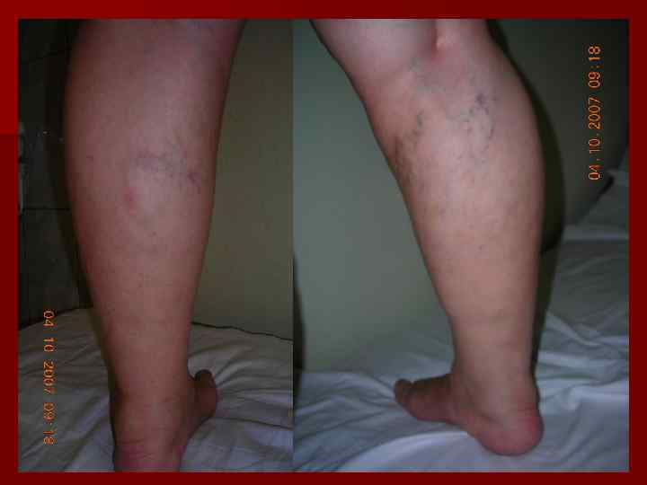Диагностика ПТБ u Тромбоз глубоких вен в анамнезе u Быстрое прогрессирование ХВН u Отек без варикоза u Инструментальная диагностика (флебография, дуплексное сканирование) n