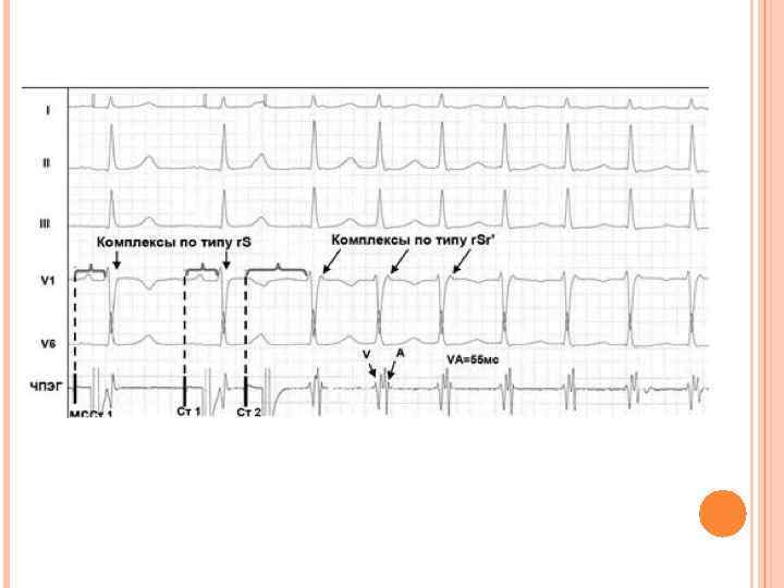 ЭКГ – ПРИЗНАКИ ЖЕЛУДОЧКОВОЙ ПАРОКСИЗМАЛЬНОЙ ТАХИКАРДИИ Независимая от комплексов QRS активность предсердий в виде зубцов Р «Сливные» комплексы (возникают часто) при появлении комплесов QRS, отличных от предыдущих, за счёт наложения наджелудочкового и желудочкового комплексов Наличие перед и после приступа желудочковых экстрасистол