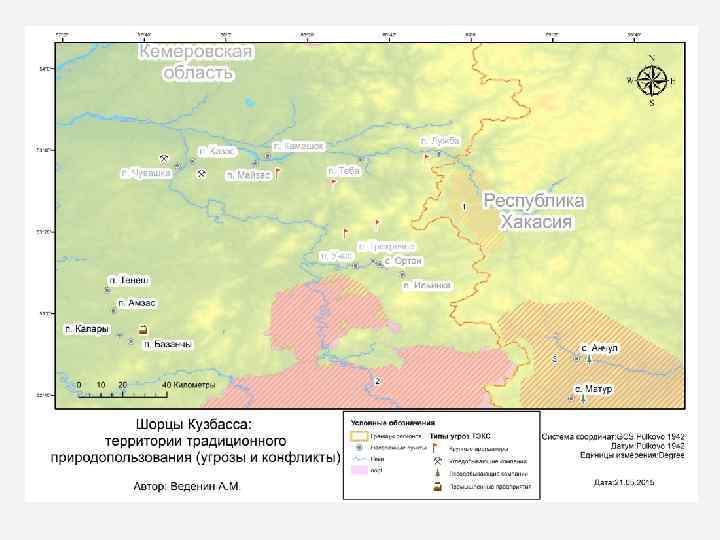 ФГБОУ ВПО «Кемеровский государственный университет» Кафедра геологии и географии Шорцы Кузбасса: картографирование территорий традиционного природопользования Веденин Алексей, Байбердин Александр, Гурьев Евгений, Кайзер Филипп, Макаров Кирилл