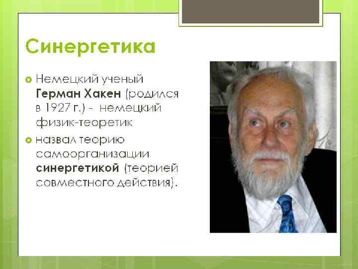 Современные теории самоорганизации сложных систем изучает синергетика Синергетика - это мостик между пониманием живой и неживой природы. Главная идея синергетики - это идея о принципиальной возможности спонтанного возникновения порядка и организации из беспорядка и хаоса в результате процесса самоорганизации.
