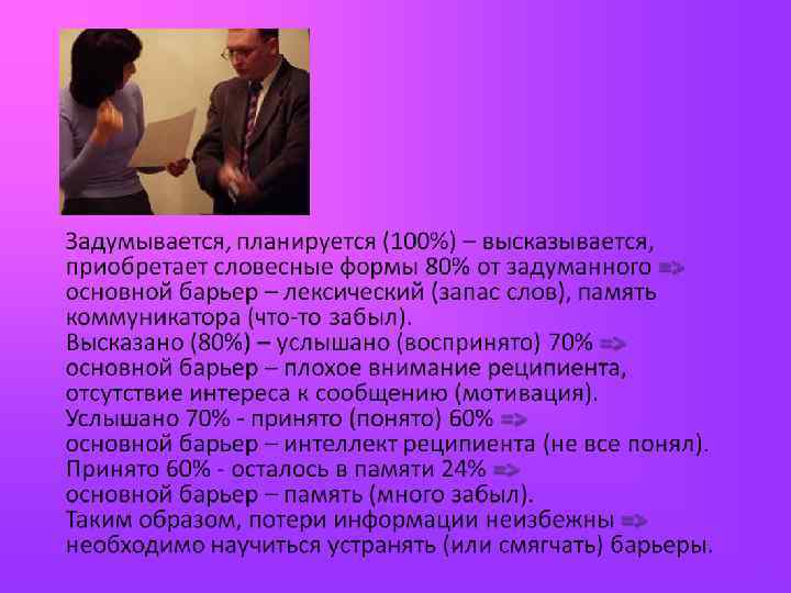 Коммуникативные барьеры В условиях человеческой коммуникации могут возникать совершенно специфические коммуникативные барьеры, которые носят социальный и психологический характер. Различия могут быть социальные, политические, религиозные, профессиональные и т. п.