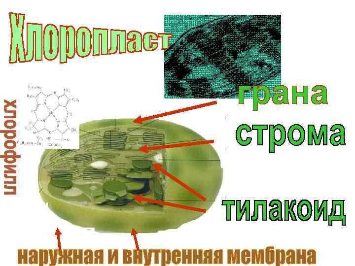 Строение хлоропластов • Двумембранные органоиды • Внутренняя часть строма • Тилакоиды – мембраные компоненты, образующие граны • Ламеллы (одиночные тилакоиды) соединяют граны • У высших растений эллиптической формы • В зависимости от освещенности меняют свое положение
