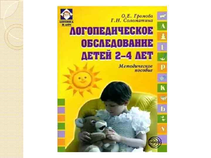 Аннотация к книге Громовой О. Е. , Соломатиной Г. Н. Логопедическое обследование детей 24 лет: Методическое пособие. - М. : ТЦ Сфера, 2005. - 128 с.