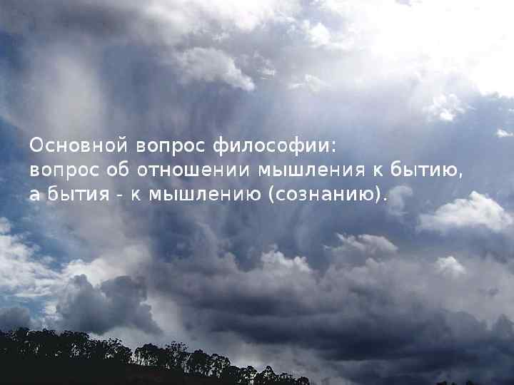 • Термин «Основной вопрос философии» ввел Ф. Энгельс в 1886 г. • Основная проблема философии: отношение мышления к бытию, духа к природе, сознания к материи.