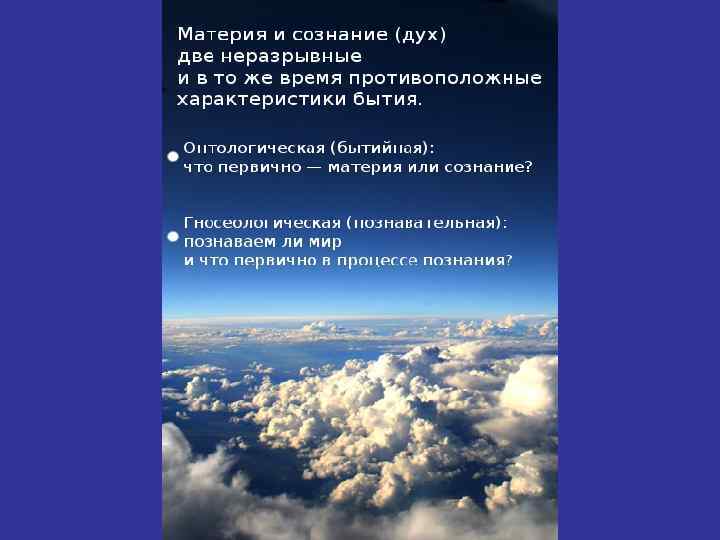 Онтологическая сторона: что первично — материя или сознание? Материализм Дуализм Идеализм 70 2/11/2018
