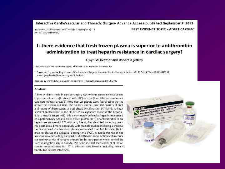 Эффективность СЗП ДВС-синдром • СЗП эффективна и абсолютно показана при наличии острого ДВС-синдрома Баркаган З. С. 1994 • Использование СЗП целесообразно только при наличии признаков геморрагического синдрома Belisle S. , Hardy J. F. , 2003