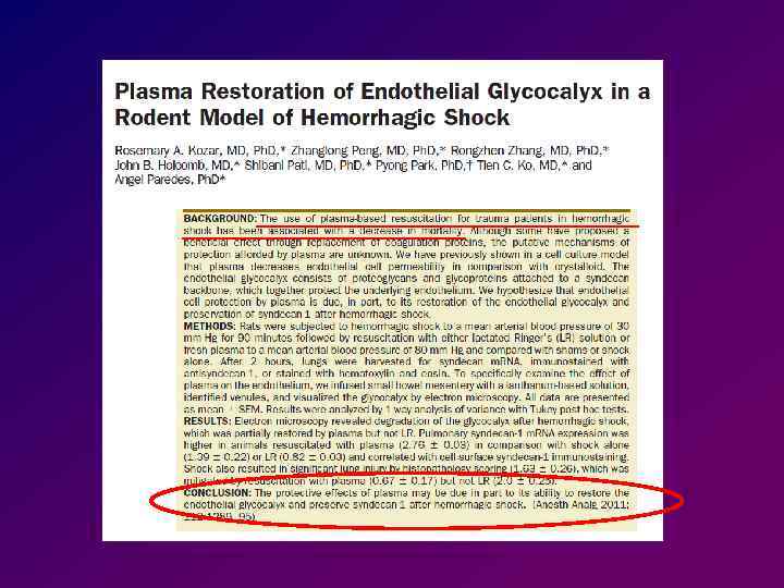 Эффективность СЗП Хирургические кровопотеря • Эффективно раннее применение СЗП Эритроциты : СЗП 1 : 1 C. Duchesne et al. , 2008 JL. Kashuk et al. , 2008