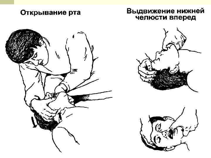 Типичные проблемы, возникающие при восстановлении проходимости дыхательных путей 1. Опасность переразгибания головы у стариков 2. Опасность переразгибания головы при травмах шейного отдела позвоночника 3. Челюсть «не выводится» 4. Как поступить со съемными зубными протезами?