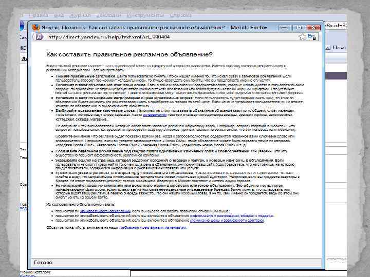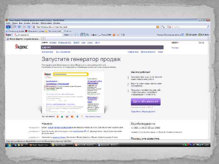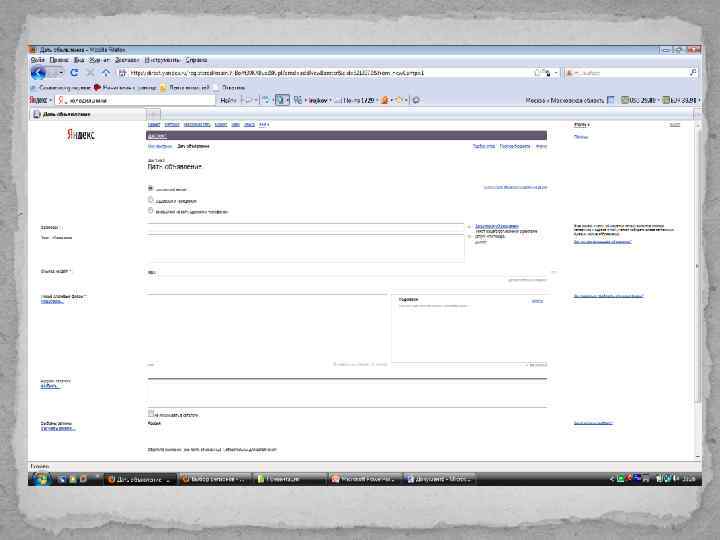 ЦЕЛИ И ЗАДАЧИ ЛАБОРАТОРНОЙ РАБОТЫ: 1. Предлагаемая лабораторная работа позволяет решить задачу углубления и закрепления на практике теоретических знаний в области продвижения продукции на рынке с помощью возможностей Интернет -рекламы. 2. В качестве основы для выполнения лабораторной работы была выбрана система контекстной рекламы «Яндекс. Директ» , поскольку в ней сосредоточено большинство существующих технологий Интернетмаркетинга. 3. Выполняемая студентами лабораторная работа подразумевает решение в реальных рыночных условиях комплекса маркетинговых задач базового предприятия, а именно: анализа рынка, исследования конкурентов, аудита сайта, географического и временного таргетинга, составления рекламных сообщений и др.