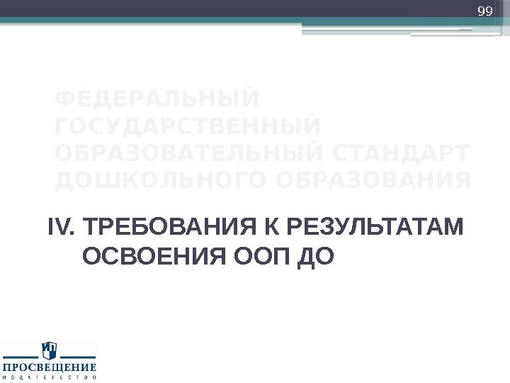 IV. ТРЕБОВАНИЯ К РЕЗУЛЬТАТАМ ОСВОЕНИЯ ООП ДО ФЕДЕРАЛЬНЫЙ ГОСУДАРСТВЕННЫЙ ОБРАЗОВАТЕЛЬНЫЙ СТАНДАРТ ДОШКОЛЬНОГО ОБРАЗОВАНИЯ