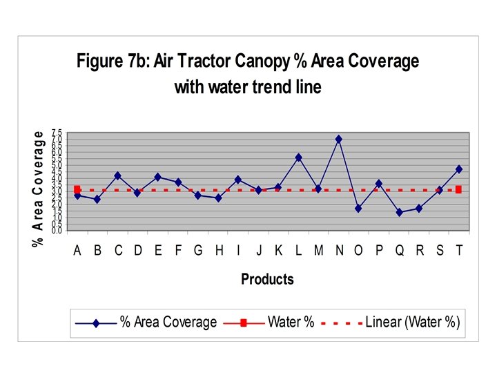 Materials and Methods: ü AT 502 A • • • (Hawkeye Flying Service) Drop booms CP-09 nozzles w/5° deflection Combination of. 078 and. 125 orifice settings 276 k. Pa (40 psi) 241 km/h (150 mph ground speed by radar) ü Cessna 188 Ag Husky • • • (Rucker Flying Service) Ag Tips CP-03 w/30 degree deflection Combination of. 078 and. 125 orifice settings 179 k. Pa (26 psi) 185 km/h (115 mph ground speed by radar) ü Aircraft calibrated for 28 L/ha (3 GPA)