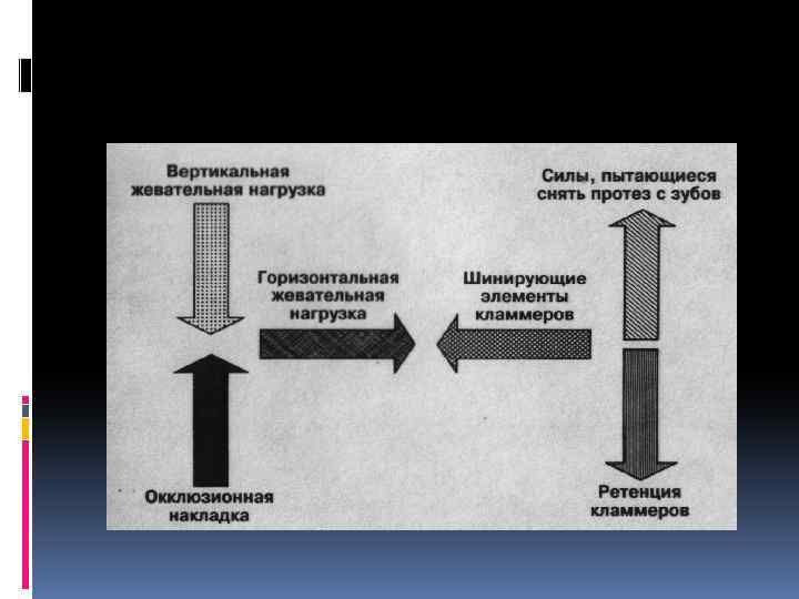 I. Ретенция – способность протеза противостоять силам, сбрасывающим его вдоль пути снятия протеза, то есть в вертикальном направлении, от протезного ложа. Стабилизация – способность противостоять силам, направленным косо и горизонтально. Опора протеза- противостояние нагрузке, падающей вертикально, вдоль пути введения протеза.