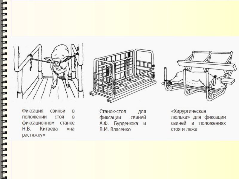Фиксации свиней в лежачем спинном или грудном положениях