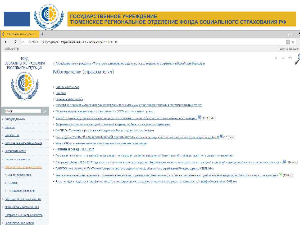 . Филиал № 1 Фонд социального страхования Российской Федерации: http: //www. fss. ru/ http: //fz 122. fss. ru/ Государственное учреждение - Тюменское региональное отделение Российской Федерации: http: // r 72. fss. ru/
