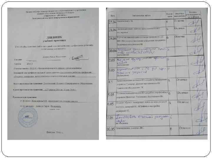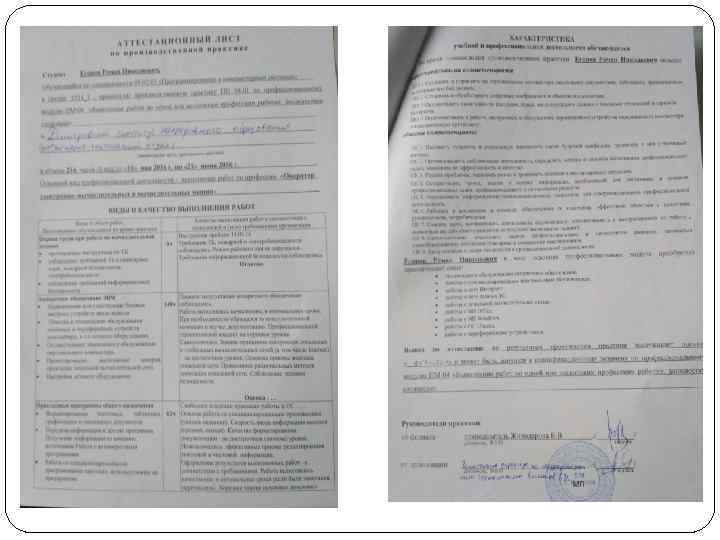 Учебно-производственная деятельность (8 семестр) Производственная практика (ПП 03. 01) с ****по **** (2 нед. ) Освоение вида профессиональной деятельности «Участие в интеграции программных модулей» и профессиональных компетенций: • ПК 3. 1 Анализировать проектную и техническую документацию на уровне взаимодействия компонент программного обеспечения. • ПК 3. 2 Выполнять интеграцию модулей в программную систему. • ПК 3. 3 Выполнять отладку программного продукта с использованием специализированных программных средств. • ПК 3. 4 Осуществлять разработку тестовых наборов и тестовых сценариев • ПК 3. 5 Производить инспектирование компонент программного продукта на предмет соответствия стандартам кодирования. • ПК 3. 6 Разрабатывать технологическую документацию Выполнена курсовая работа по темые…, оценка Квалификационный экзамен по ПМ 03 - оценка